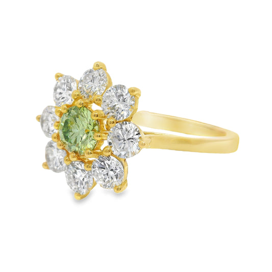 Peridot and Diamond Flower Halo 18k Yellow Gold Engagement Ring