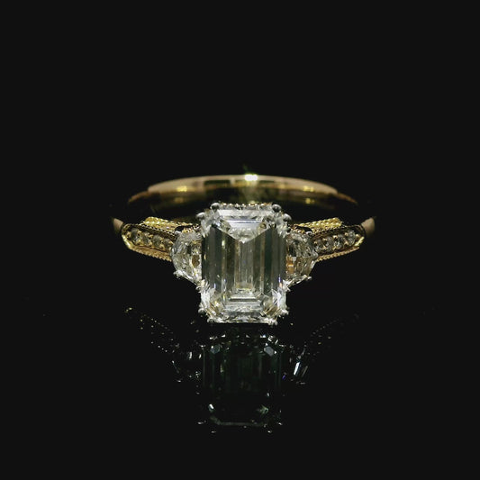 Antique 1.5 Carat Emerald Cut Engagement Ring in 18k Yellow Gold