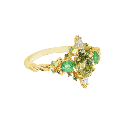 14k Yellow Gold with Emeralds and Fancy Vivid Green Lab Diamond Centerstone