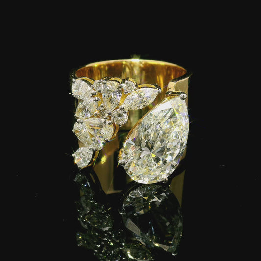 5 Carat Pear and 2.02 Carat Mixed Shape Diamond Open Cuff Ring in 14k Yellow Gold (7.02 tcw)