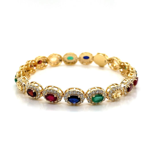 14K Gold Oval Gemstone and Diamond Halo Bracelet