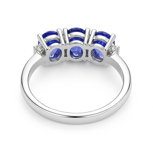 14k White Gold Tanzanite 3 Stone Ring with Natural Diamonds (1.50 tcw)