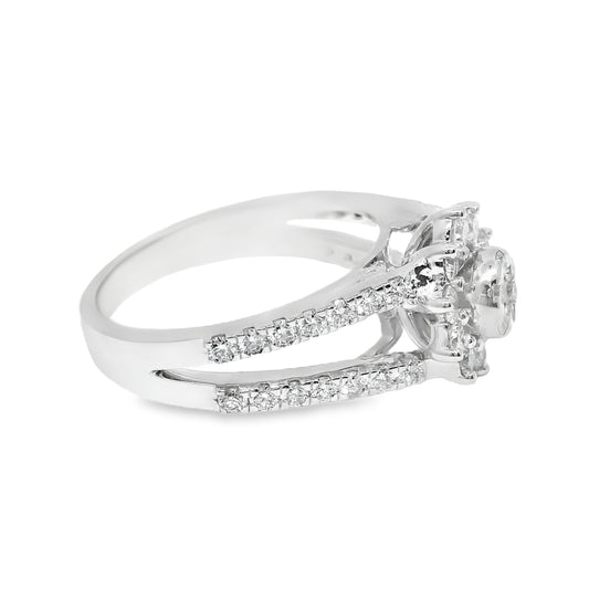 1 Carat Natural Diamond Sunflower and 14k White Gold Ring
