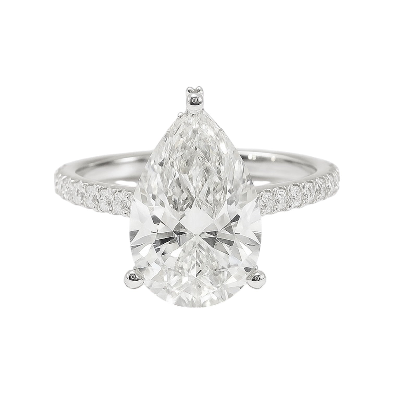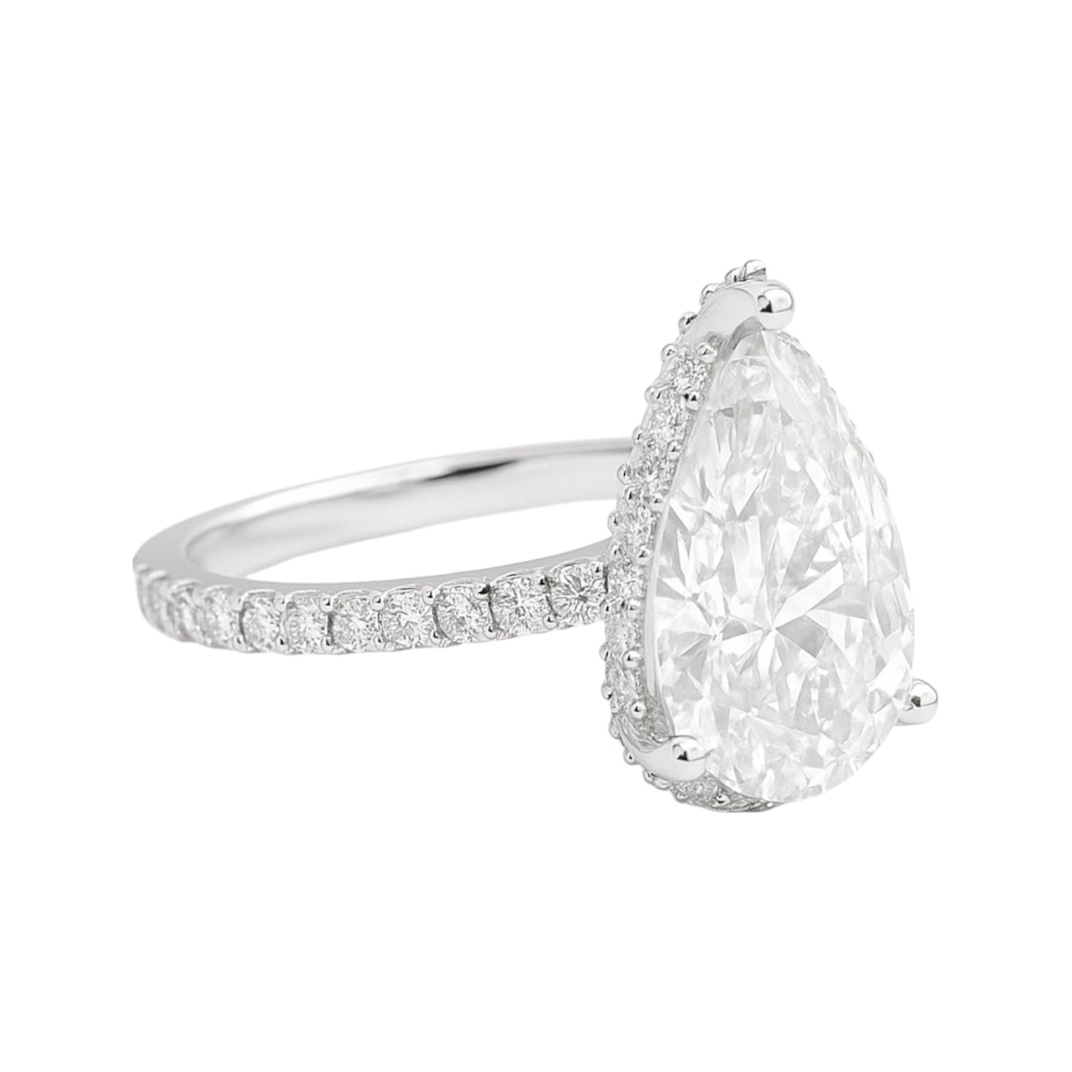 14k White Gold Pear Cut Lab-Grown Diamond Engagement Ring with Hidden Halo & Pavé Band – 3.82 tcw