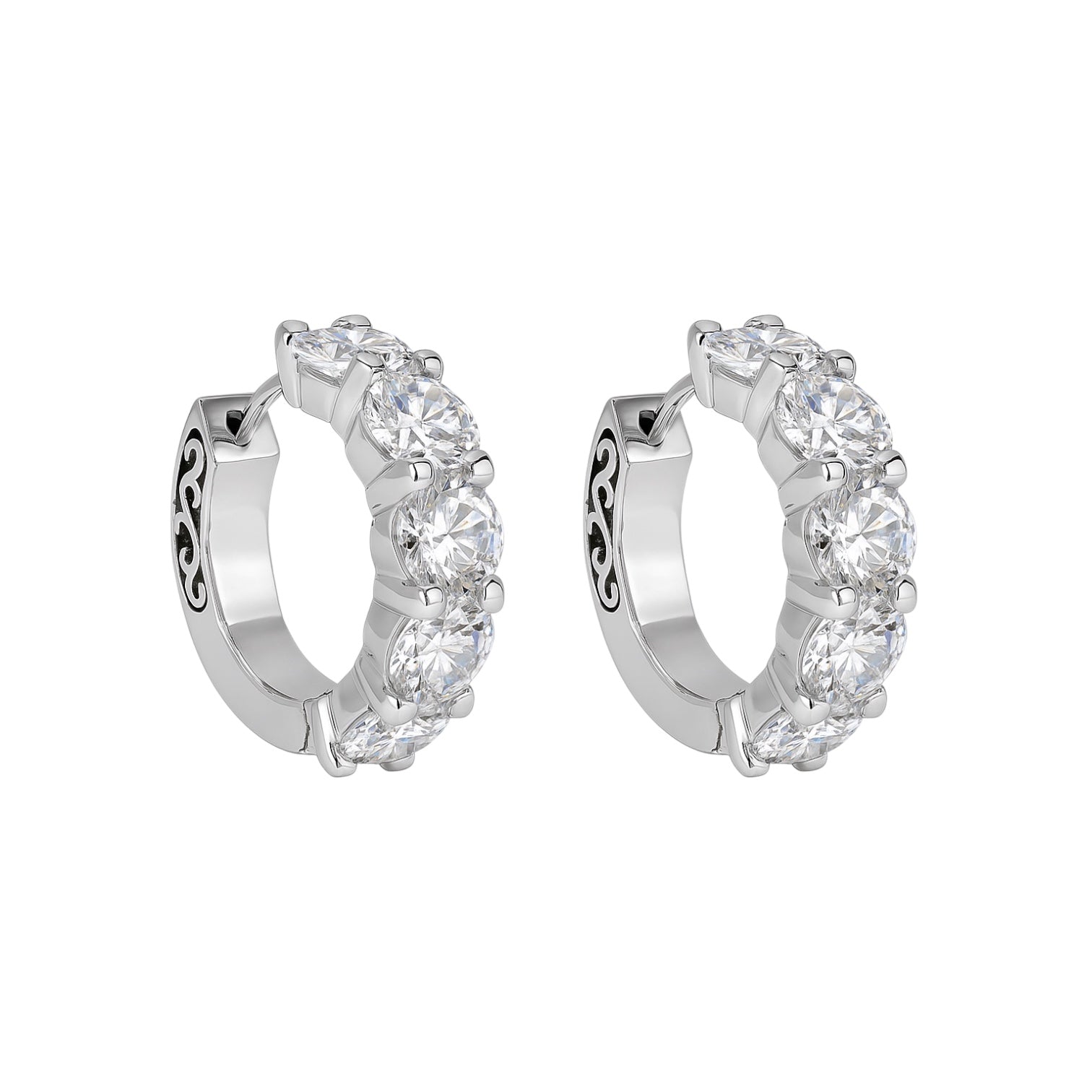 Modern everyday luxury with maximum brilliance— these huggies earrings feature 3.00 tcw of sparkling lab-grown diamonds, set in bright 14k white gold. Designed with 5 diamonds facing outward, catching light from every angle. A secure hinged lock ensures all-day comfort and confident wear. Perfect for adding bold elegance to any look.