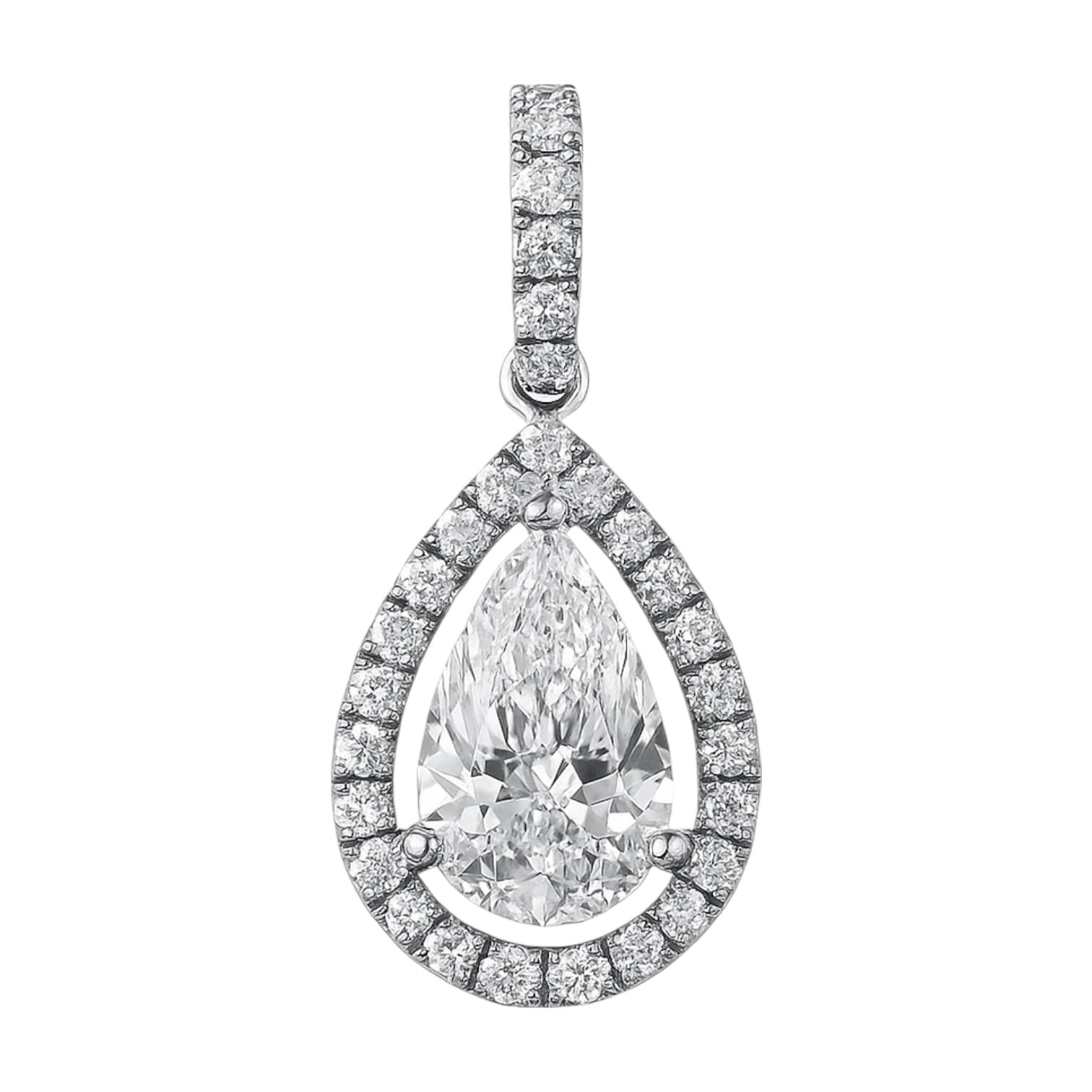14k White Gold Pendant w/ Natural Diamonds Accent & 1.01ct. Pear LGD Center-stone (VVS1/D)