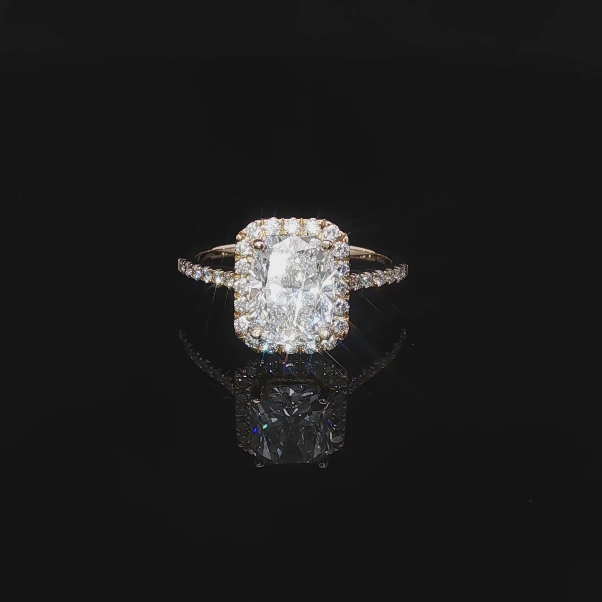 Celebrate your love story with this stunning 14k yellow gold wedding set, where timeless elegance meets modern romance. The show-stopper? A breathtaking 2.01 carat elongated cushion diamond (VS1/E clarity) that catches light from every angle.