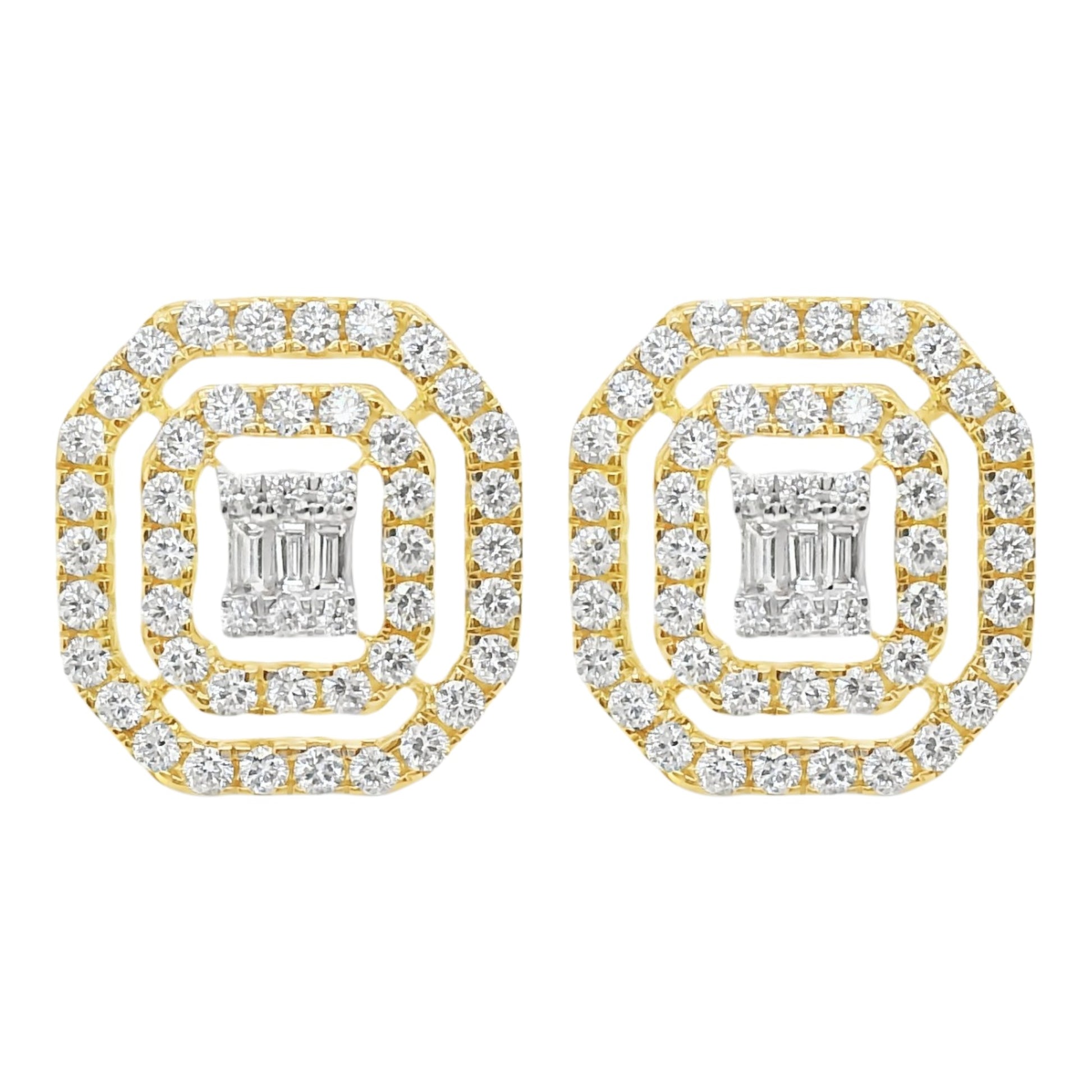 14k Solid Gold Baguette Pavé Diamond Octagon Halo Screwback Earrings 0.94 Ct. T.W