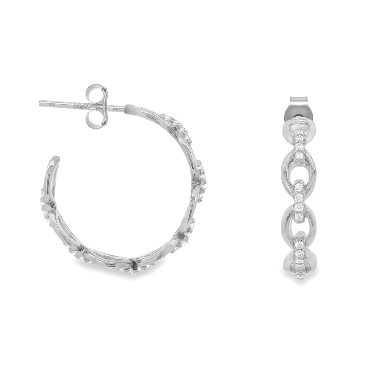 Embrace the allure of delicate movement with the Celeste Chain Earrings — where timeless oval links meet the radiant fire of moissanite. Crafted in rhodium-plated sterling silver, these 21mm post hoops cascade with interlocking oval links, each set with brilliant lab-grown moissanite stones that shimmer with every turn.