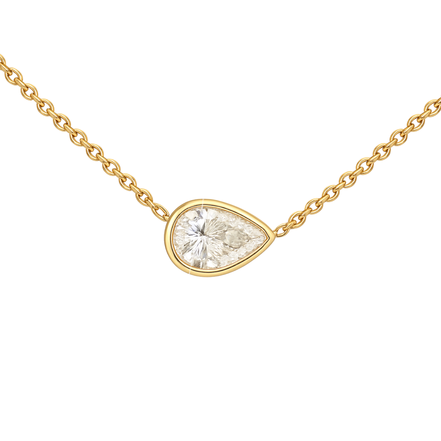 18k Gold Bezel Set Pear Pendant Necklace – 18"